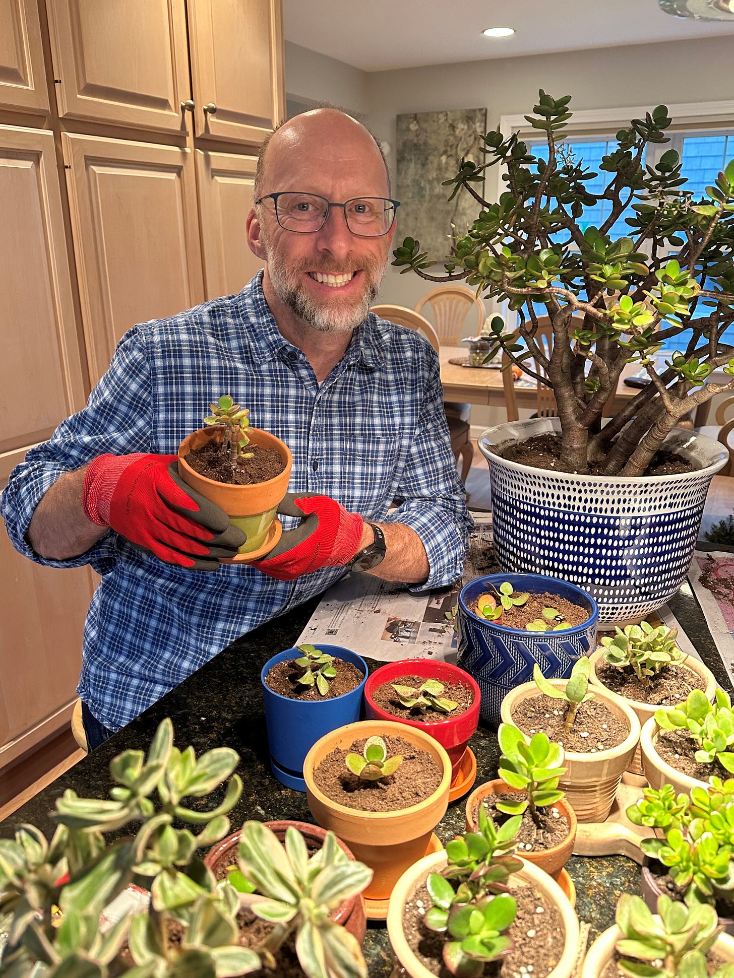 I’ve spotted some great jades during my recent travels, and I’ll share some pics in the next issue. But Thanksgiving week was the time of “The Great Jade Replanting of 2025.” I planted or replanted about 20 of my green babies, started a half dozen cuttings, and prepped many for friends and family. Yes, I did this in the kitchen (a little too cold and wet outside this year) but cleared most of it away in time for Thanksgiving dinner!