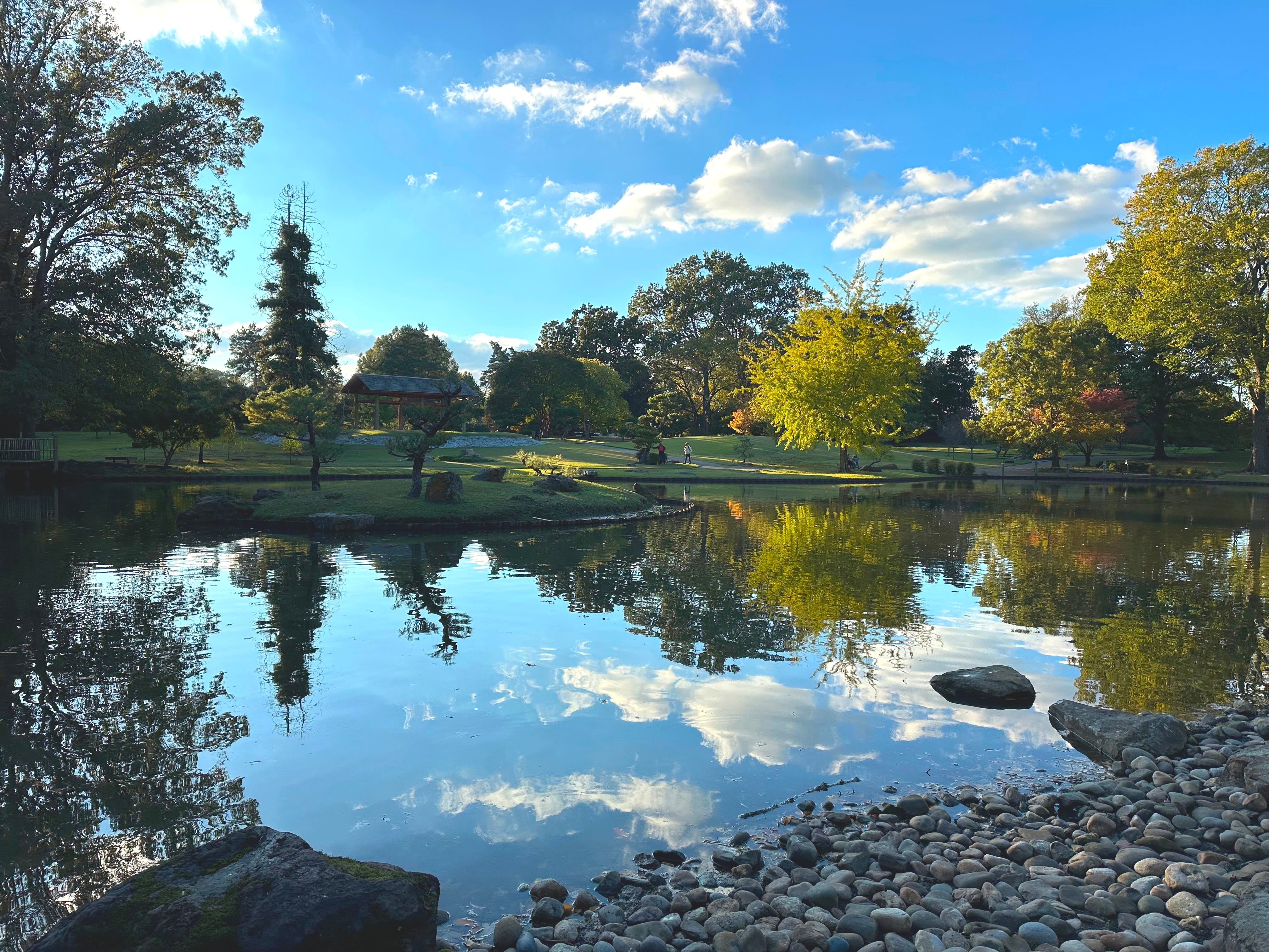 Sunset over the koi and turtle pond in the Japanese gardens at the Memphis Botanical Garden